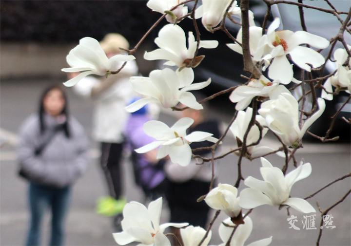 3月4日,南京雨花台风景区内宝华玉兰开放,在春风中摇曳生姿,吸引市民和游客前来观赏。新华日报·交汇点记者 蒋文超摄