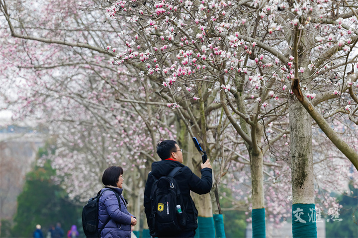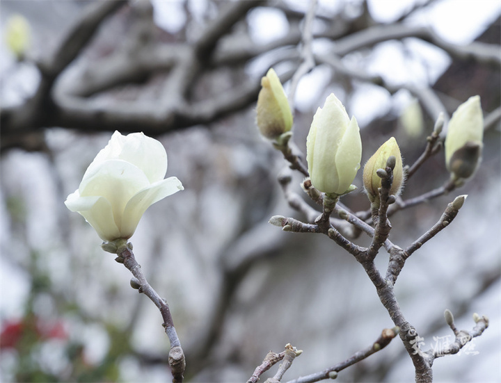 3月5日,南京朝天宫里的玉兰花绽放,吸引市民、游客拍照观赏。任康摄 视觉江苏网供图