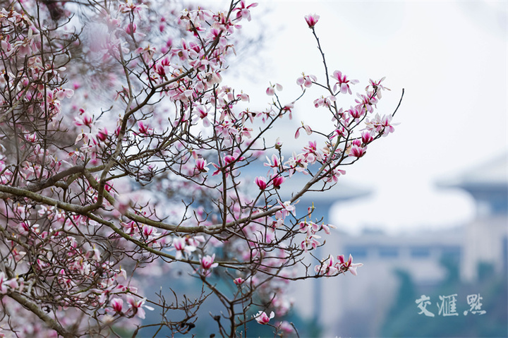 3月2日,淮安市,大运河畔中洲岛的玉兰花绽放,与建筑相映成景。周长国摄 视觉江苏网供图