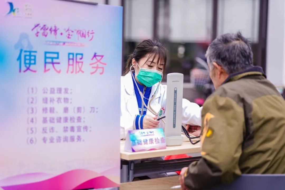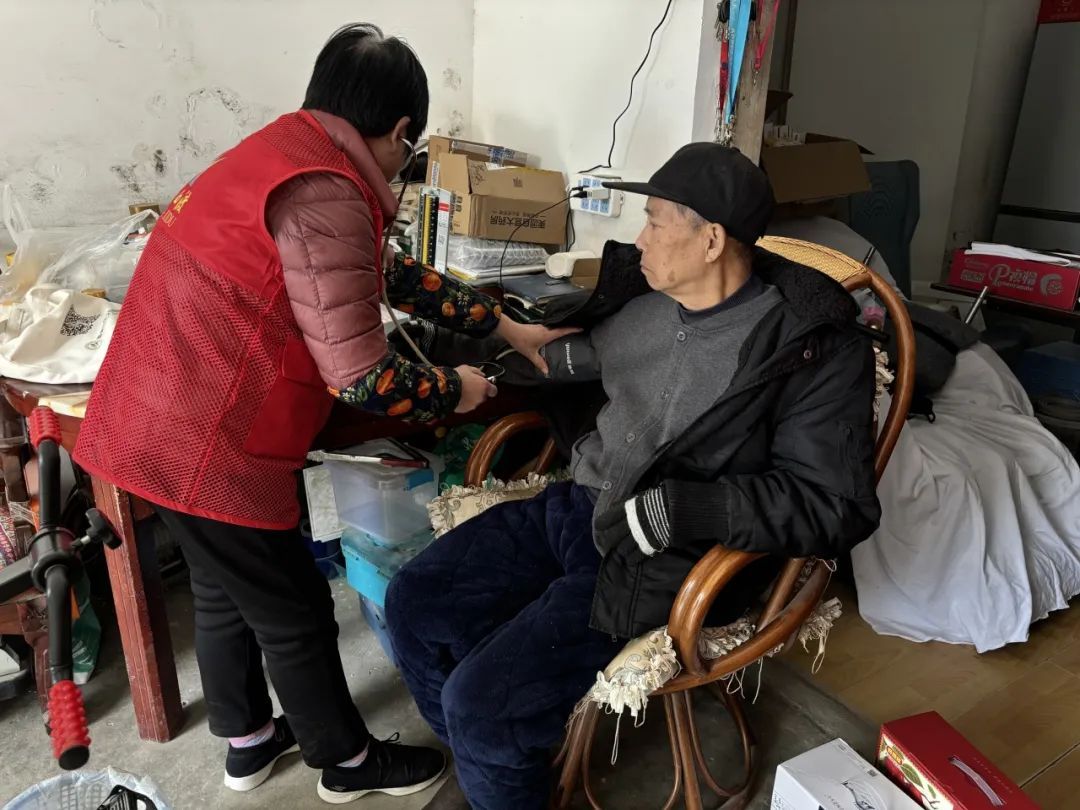 由村事业支部和医务室人员组成的“贤城轻骑兵”志愿服务队,上门为独居老人提供健康服务,包括量血压、健康咨询及保健知识宣传。