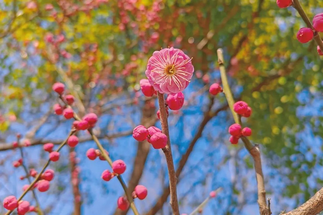 大片大片的梅花在阳光的轻抚下肆意绽放