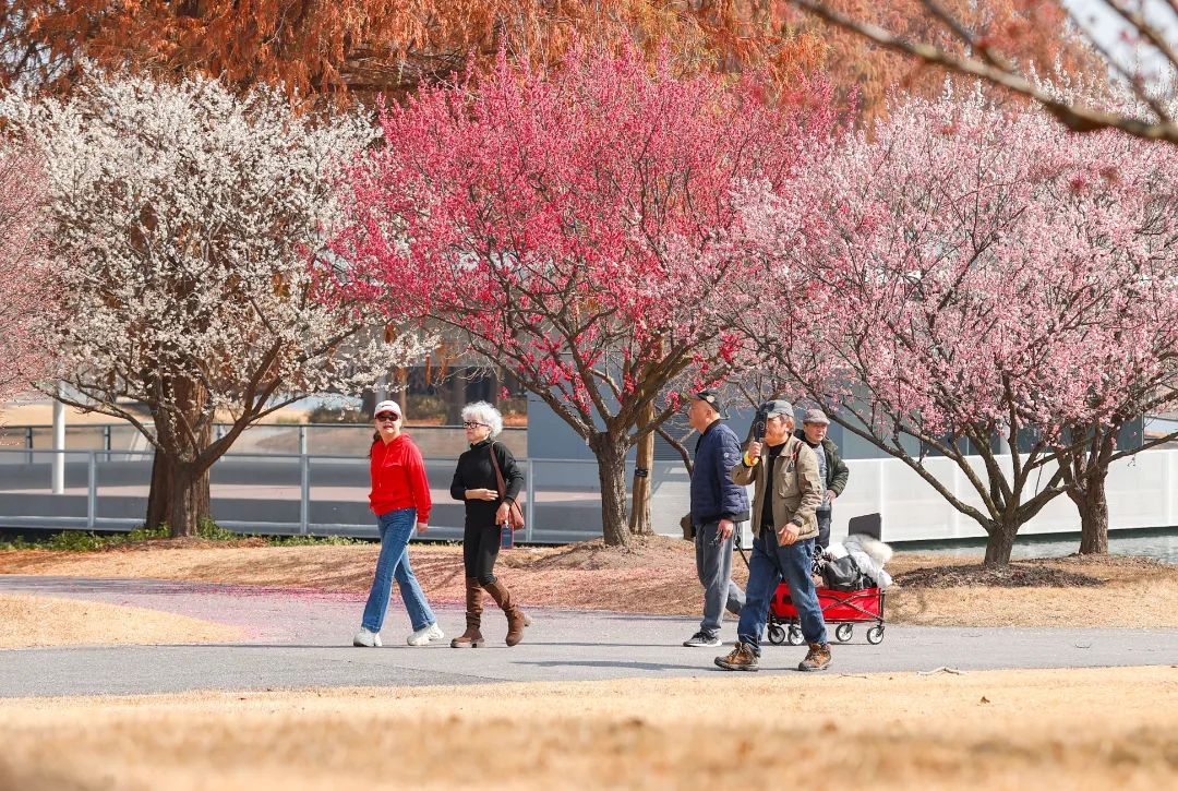 上周末,上海迎来150多年以来最热的三月初。伴着晴好的天气,梅花、樱花、桃花进入花期。市民们纷纷走出家门踏青赏花,松江多家景区迎来大客流。