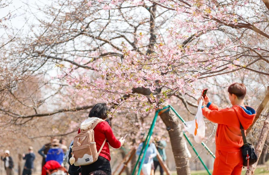 眼下,位于佘山国家旅游度假区内的辰山植物园部分早樱和郁金香已开放,河津樱等早樱品种与郁金香形成多彩花带。微风拂面,春的气息扑面而来,游客们穿行其中,用镜头记录春日絮语。