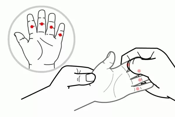 4.掐四缝。对于脾虚食积的孩子,掐四缝穴可以消积,提高食欲。用大拇指甲掐两个手的掌指关节远端。