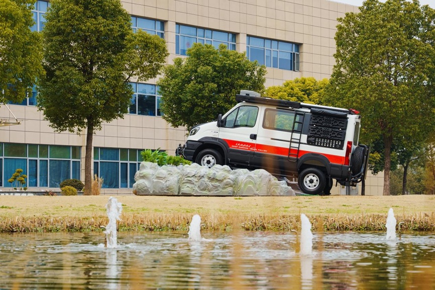 作为依维柯家族新一代越野悍将,欧霸·山海不仅传承了依维柯品牌与生俱来的硬派基因,更开启了一个“大空间,真四驱,全地形”的专业越野新“流派”。专为越野场景设计的全时四驱分动器,标配前桥、中央、后桥三套差速锁,支持六种全地形模式,实现四轮动力精准分配,更有F1C 3.0T发动机瞬间爆发出132kW、430Nm的强劲动能,脱困、爬坡易如反掌。超过13立方米的内部空间,宛如一座移动的城堡,再加上110L大容量主油箱和20L副油箱组合,让车辆续航里程达到1200公里。正如南京依维柯的工程师所言:“它生来就是为征服山海而存在的。”