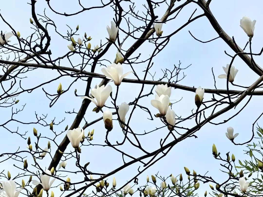 “今天路过这里,看到白玉兰已经开了。花一开,整座公园都充满了生机,仿佛万物复苏,人的心情也变得特别舒畅。”游客陈先生介绍,自己看到这一美景,立刻用手机拍下了这难得的瞬间。