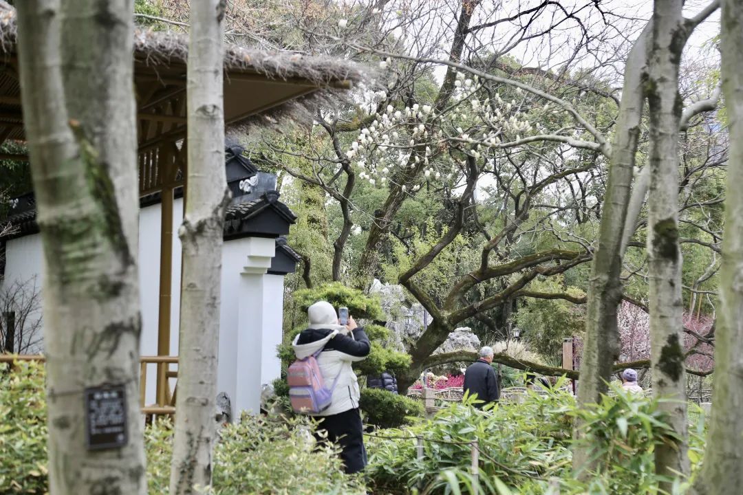 “白玉兰开花的关键因素之一是冬末初春的气温。经过整个冬季的花芽孕育和营养积累,到了春天气温回暖,它们便会盛放。根据预测,古猗园内白玉兰的花期将在3月中上旬到来。接下来,二乔玉兰和紫玉兰也将陆续开放。”刘阿梅说。