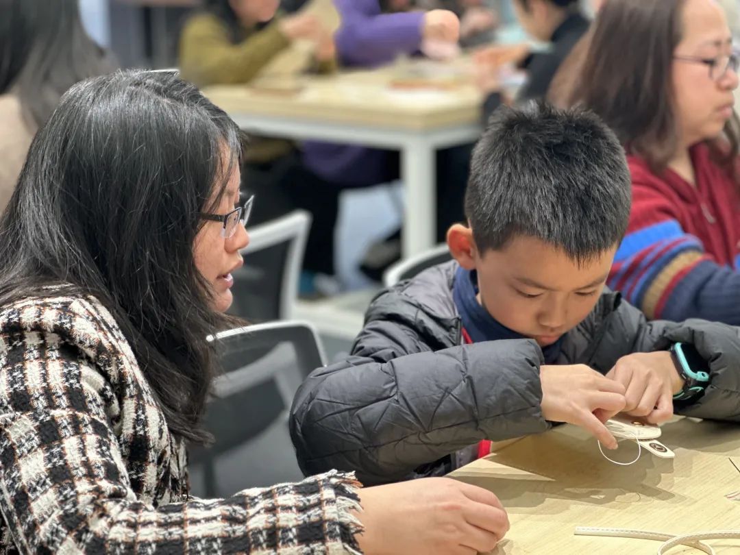 余城阳小朋友兴奋地表示,这是他和妈妈第一次尝试做皮具,尽管过程中遇到了一些小挑战,但还是很有成就感,“在我最喜欢的书店,陪妈妈一起过节特别有仪式感。这个手机包是送给妈妈的,希望我的‘女神’越来越美丽!”