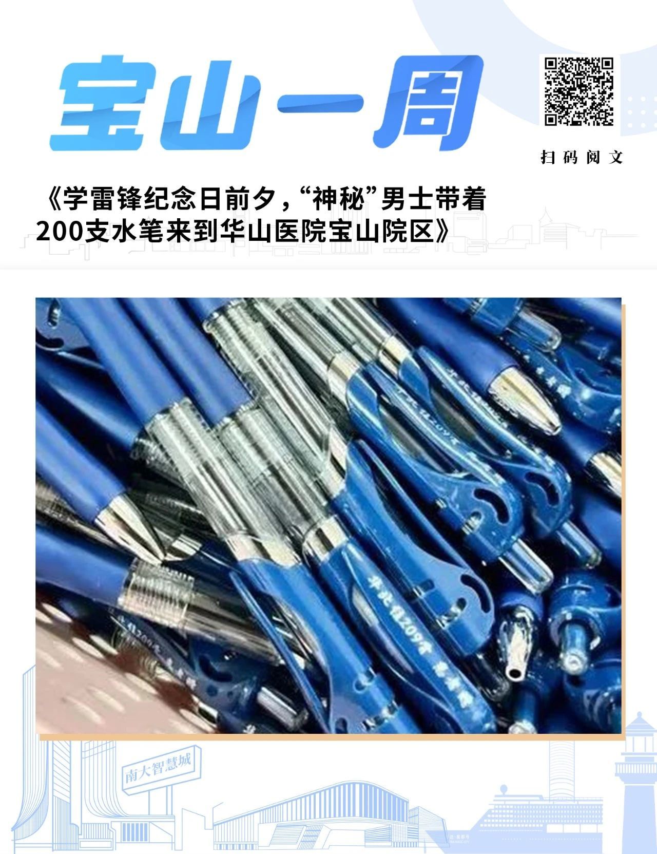 学雷锋纪念日前夕,“神秘”男士带着200支水笔来到华山医院宝山院区......