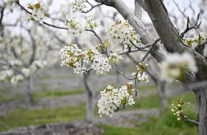 堡镇瀛南村大片的梨园里,梨花在春风里热烈而宁静地绽放,远远望去,胜似“雪的海洋”。微风一吹,梨花雨细,美好至极。