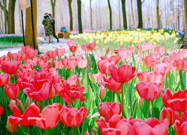 这几年,每逢崇明花朝节,百万株雍容华贵的郁金香,就在主会场东平国家森林公园华丽绽放,挺拔的花朵,自带“春色”滤镜,让时光都变得温柔缱绻。