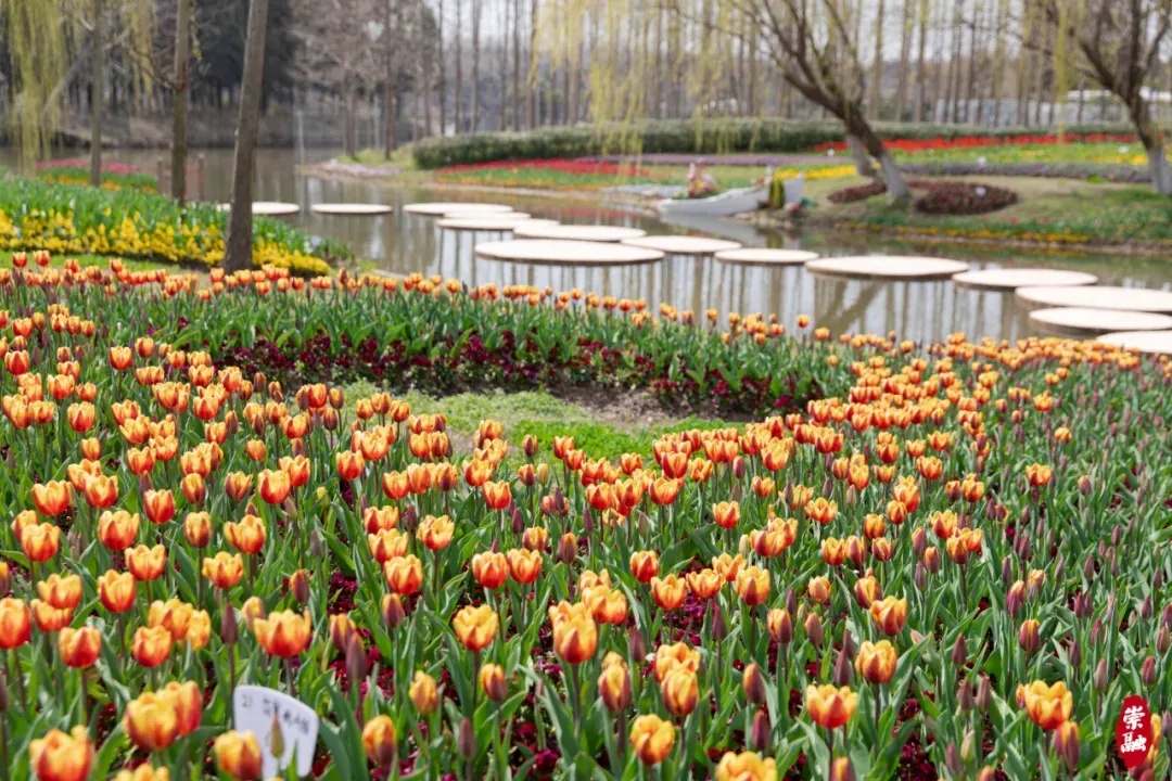 赏郁金香,近年崇明还有一处新晋打卡地——庙镇种种片林。遍地的郁金香,搭配着洋水仙、风信子,姹紫嫣红,与林地内的珍稀树种、湖泊、植被交相辉映,形成了多层次、多色彩的花海景观。