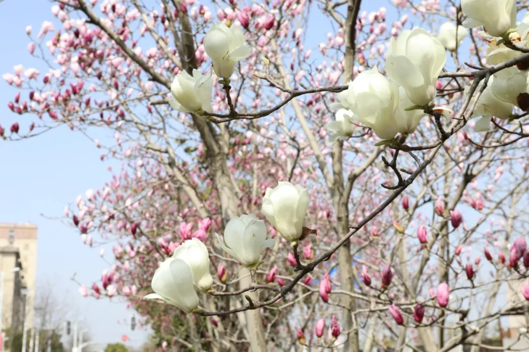 乔松路上,千枝万蕊,玉兰花莹洁清丽,来往的车辆行人,仿佛也要跟着它们,生出发芽的心情。