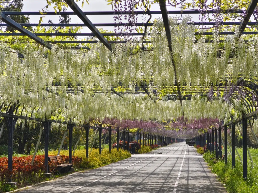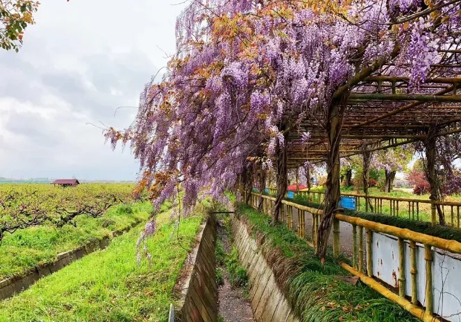 在瑞华果园,也能邂逅同样的“一帘幽梦”,徜徉在2.2公里的紫藤长廊下,闻着淡淡花香,令人心旷神怡。