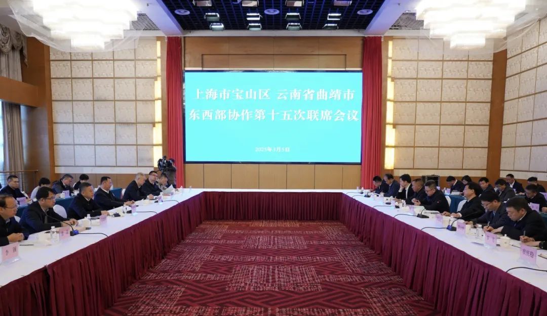 3月5日至8日,由区委书记李晨昊带队的宝山区代表团赴云南省曲靖市开展交流考察,先后前往会泽县、宣威市、富源县、罗平县、师宗县,实地查看对口支援发展举措落实情况,深化巩固医疗、教育帮扶成果。3月5日下午,召开上海市宝山区—云南省曲靖市东西部协作第十五次联席会议,并看望慰问了援滇干部,进一步深化两地发展情谊、共聚发展合力。云南省委常委、曲靖市委书记杨斌,市委常委、常务副市长龚加武,市委常委、副市长侯海峰,市人大常委会副主任谭力华,副市长海建才,市政协副主席罗芳,宝山区副区长陈汇青等出席。