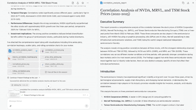 值得一提的是,这三个例子均可以通过ChatGPT、Claude等大模型及基于这些大模型AI代理产品完成。不过,Manus将文档阅读、网页浏览、运行Python代码等执行过程,通过虚拟机图形用户界面在传统AI对话框的右侧进行了展示,十分可观,可以更好地满足用户的情绪价值。