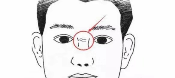 鼻子和两眼中间的鼻梁处若有一条横纹沟,严重者会出现一条青筋,称为“鼻褶心征”。如果面部出现这条“皱纹”,预示可能存在冠心病等心肺疾病。