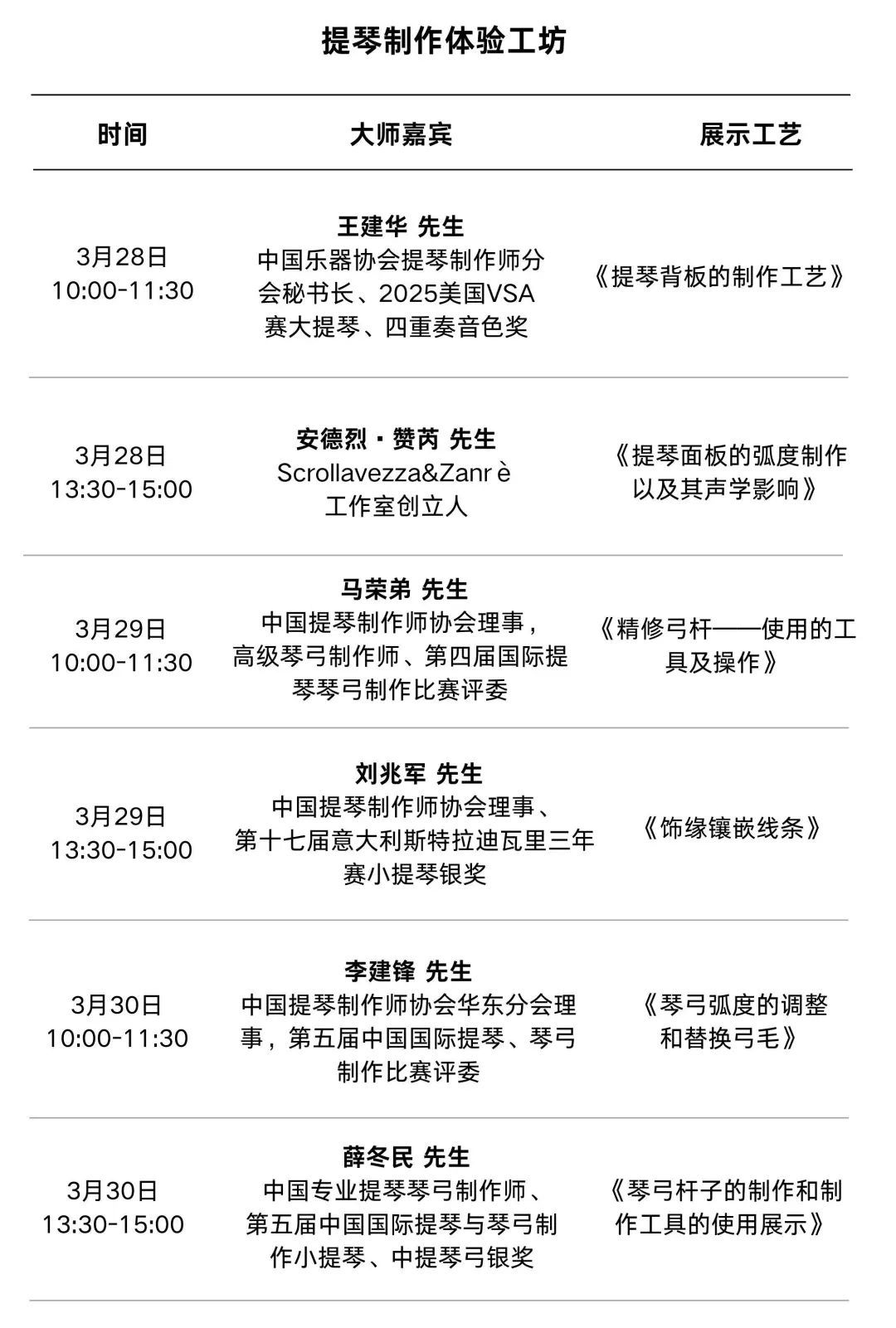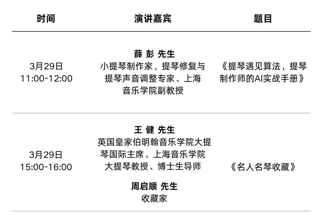 想要亲手制作一把属于自己的提琴吗?快来参加提琴制作体验工坊!多位国内外制琴大师将现场演示不同阶段的提琴制作工序,让你在大师的指导下,亲身体验提琴制作的精妙过程,感受传统工艺的魅力。