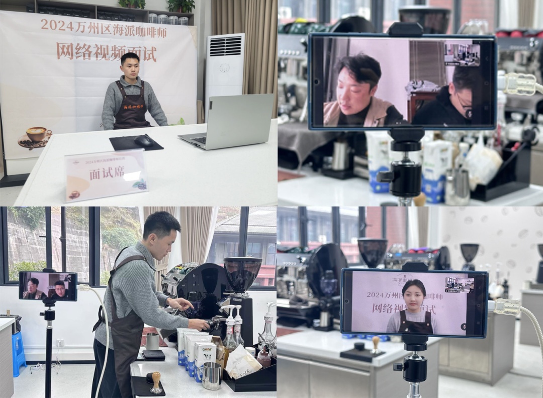 为了帮助本次海派咖啡师培训的首批学员顺利就业,在黄浦区就业促进中心的对接帮助下,1月3日,万州区大学生就创中心联合全国著名咖啡企业上海一尺之间文化传播有限公司,开展了2024海派咖啡师培训首批学员“网络视频面试”。为了更好的展示学员的技能水平和实训成果,帮助企业充分了解学员的个人情况,双方特意将本次视频面试设在“海派咖啡师实训基地”举行。▲面试官从个人工作经历、咖啡专业知识、冲泡及拉花技巧等方面分别对学员进行面试考察