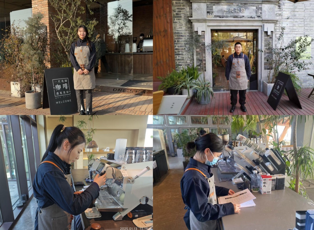 据了解,一尺之间公司成立于2015年,是一家以咖啡商业空间运营为核心,文化创意内容及衍生品研发相结合的“生活方式类”品牌企业。已在上海、浙江、北京、广东、重庆等地建立了67家咖啡馆。涉及咖啡馆、艺术展陈、文化交流活动、文创产品、咖啡调酒培训等多个产业,学员来到企业后,对企业的薪资待遇和工作环境非常满意,表示会好好珍惜这难得的机会,好好学习锻炼,未来回到家乡创业。▲1月13日,学员们即刻上岗,来到上海一尺之间咖啡企业各门店实习就业,并接受为期一周的岗前培训
