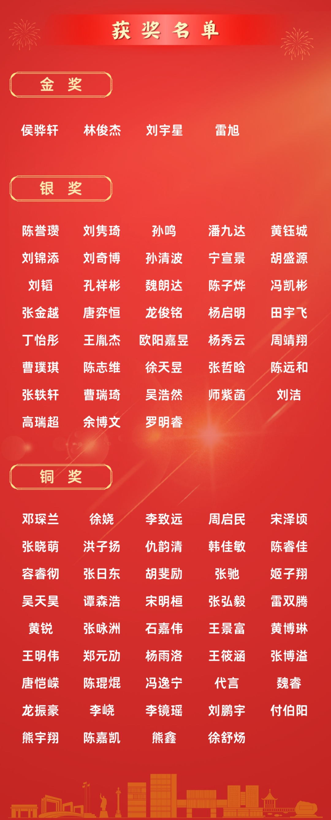 金奖获得者:雷旭(左三),林俊杰(左四)刘宇星(右三),侯骅轩(右二)