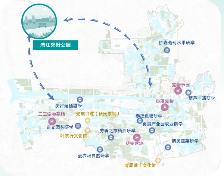 围绕“五好两宜”和美乡村总体要求,结合区域资源优势及战略导向,闵行将以“浦江第一湾,田园新天地”为总体定位,依托“三个三”的区域优势(三区交界、三水汇湾、三图叠加),聚焦农业科技创新引领、都市近郊休闲引领和城乡融合发展引领3个目标,全方位对接“一南一北”战略,着力推动大治河两岸焕“新”提“质”。