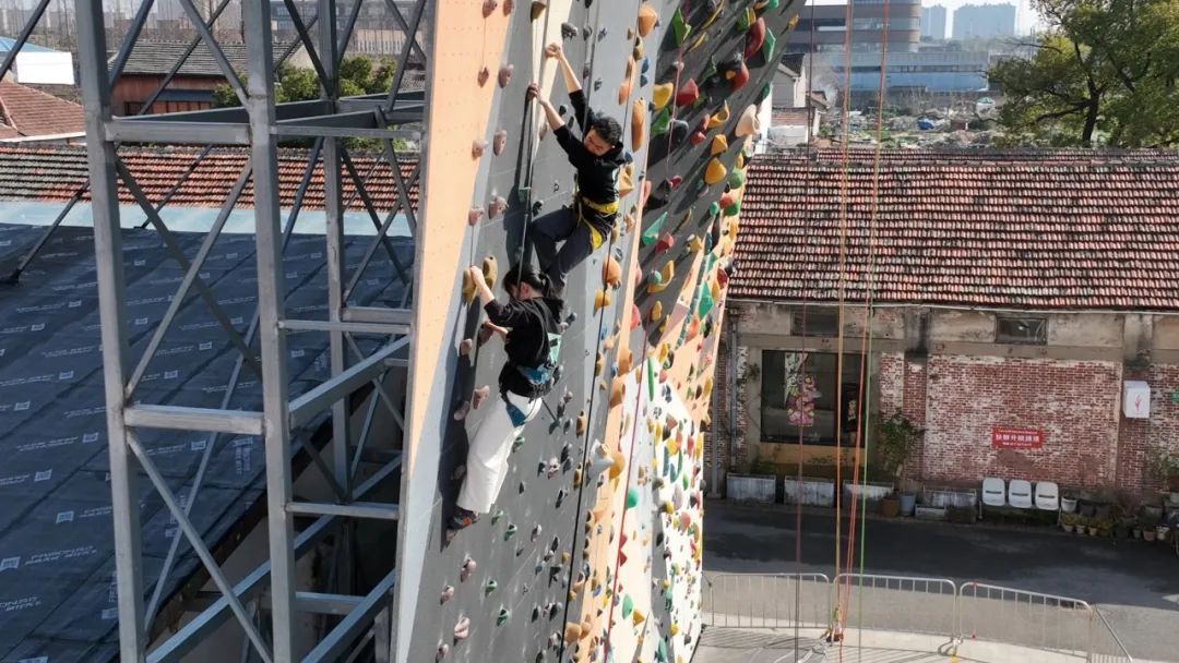 在云间粮仓创意园西15栋,有一处宝藏攀岩点——5+攀岩松江云间馆。馆内岩点超过上万个,而且全都可以拆卸重组,近80条攀石线路,难度各异 ,最高攀爬高度达16米。无论是新手想要体验初次攀爬的乐趣,还是高手追求更具难度的挑战,都能在这里找到属于自己的“战场”。
