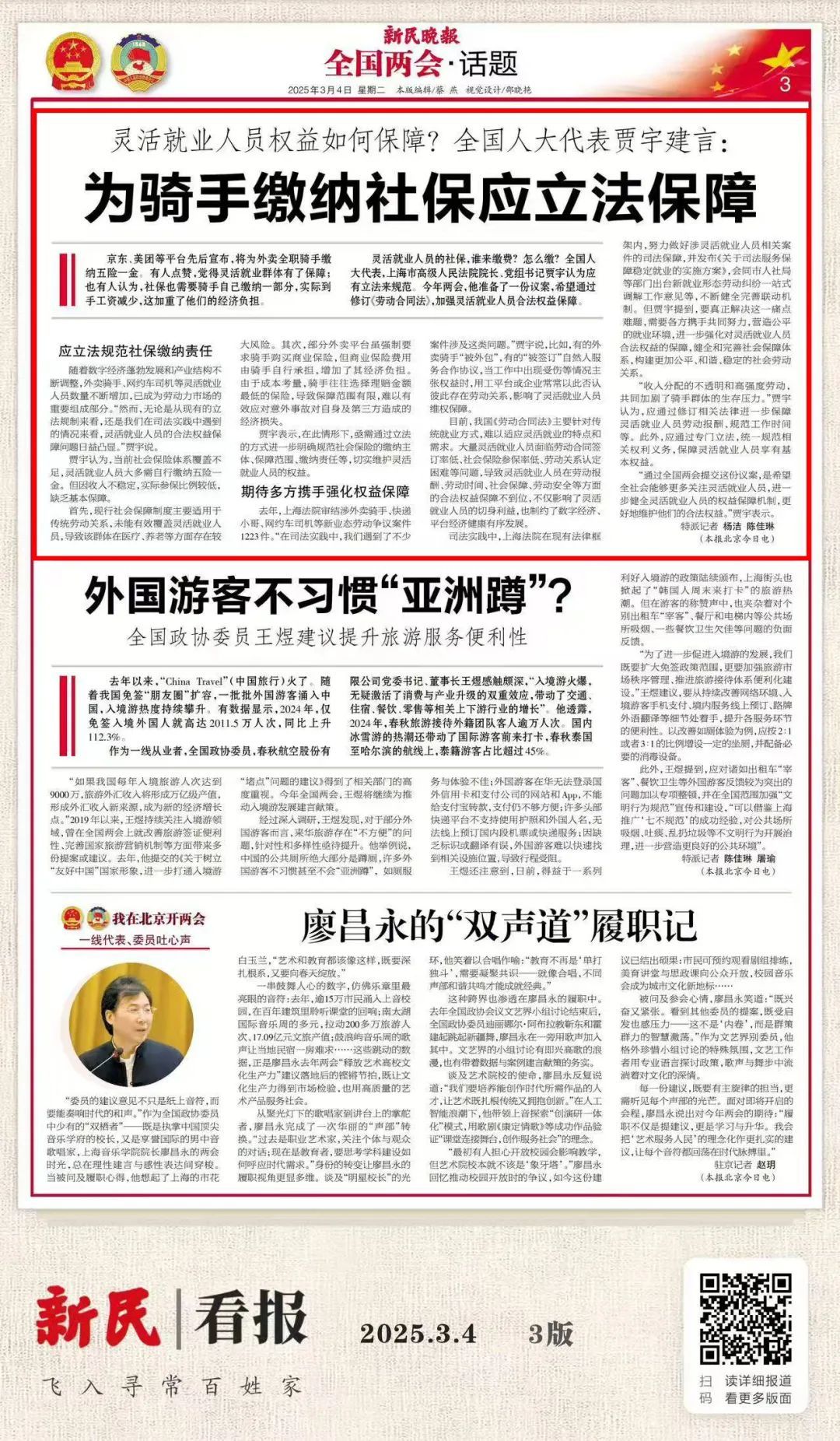 “通过全国两会提交这份议案,是希望全社会能够更多关注灵活就业人员,进一步健全灵活就业人员的权益保障机制,更好地维护他们的合法权益。”贾宇表示。