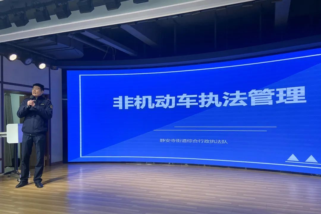 提升居民安全意识,培训必须先行。为此,街道综合行政执法队依托静安区城市基层党建(基层治理)学院静安寺街道分院,积极开展非机动车安全管理培训,为居民宣传和讲解非机动车安全知识,进一步增强大家的安全出行意识,营造更加安全、文明的交通氛围。