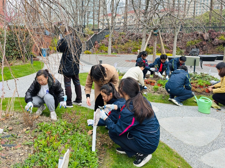活动当天,街道林长办特别邀请了上房园林植物研究所的园林绿化工程师进行现场指导。了解了相关种植技巧和注意事项后,大家撸起袖子,挥锹铲土、扶苗填坑、浇水灌溉,仔细栽种下精心挑选的青城细辛、德国洋甘菊、蛇含委陵菜等绿植,用这些四季常绿的品种取代了原先秋冬季长势不佳的植被,并为蛰伏一冬的植物修枝剪叶。