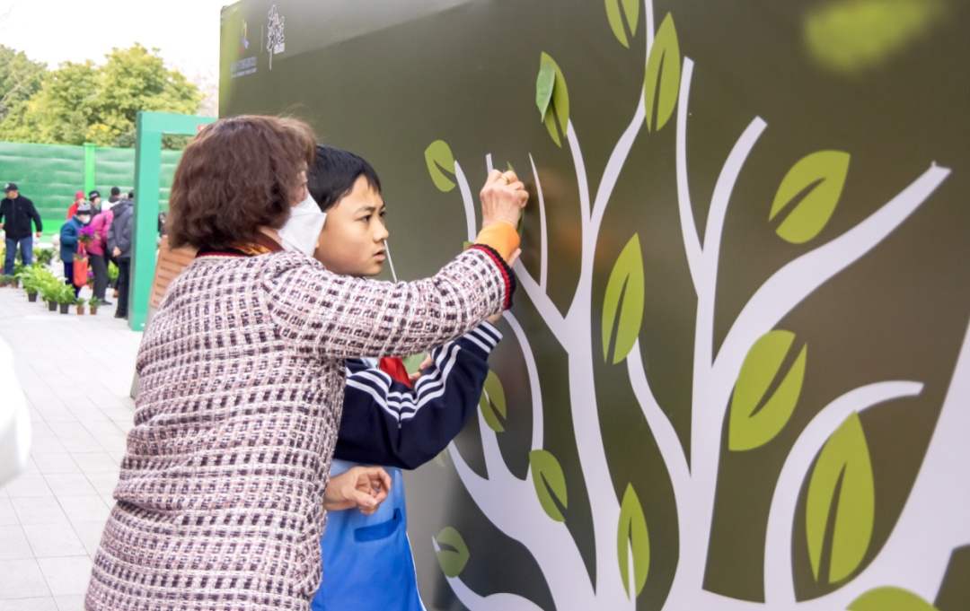 活动现场气氛热烈,吸引了众多居民参与。来自紫阳中学的多名学生科普志愿者积极发挥作用,不仅将绿植精心摆成“❤HJ”字样,打造出“网红打卡点”,还向现场群众介绍植树节的主题和意义,普及环保理念,掀起全民爱绿护绿的热潮。