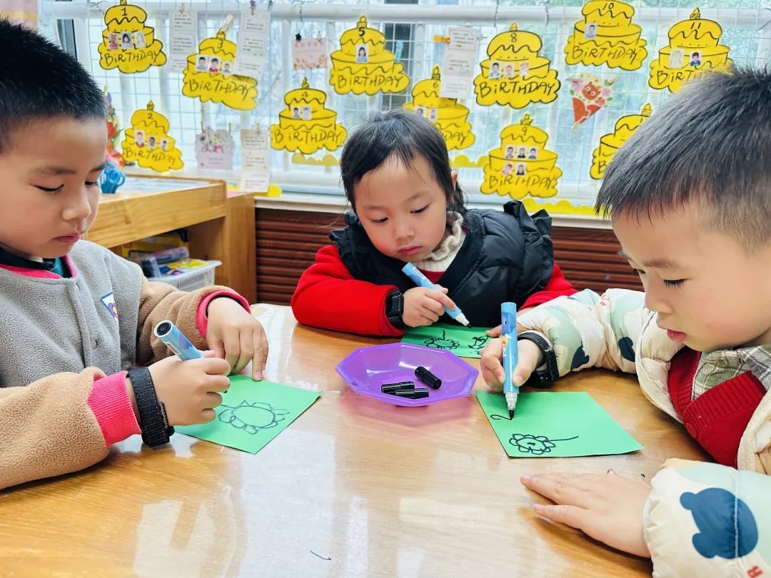 小班的宝宝们则承担起照顾幼儿园自然角植物的任务,布置、观察、浇水等也锻炼了他们的动手能力、培养责任感;中班的萌娃们化身为忠诚的环保小卫士 ,用绘画和手工表达对环境保护的担当。他们拿起画笔,描绘心中美好的绿色家园,写下守护家园的标语,积极宣传引导大家爱护环境。