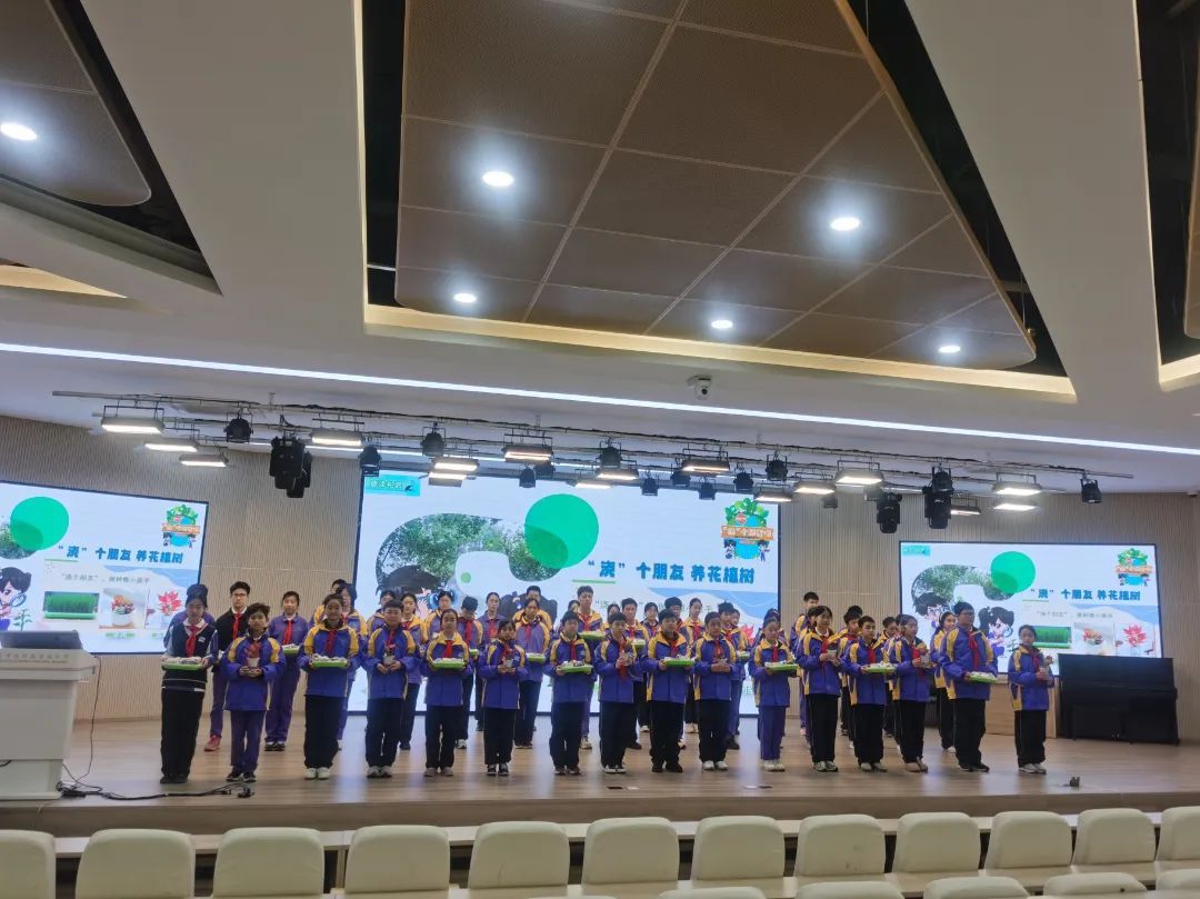 升旗仪式结束后,学校还为各中队代表颁发了绿植。这些绿植将被带回各班,成为学生日常养护的对象。学校希望同学们用心呵护每一株植物,用勤劳的双手打造绿色校园。