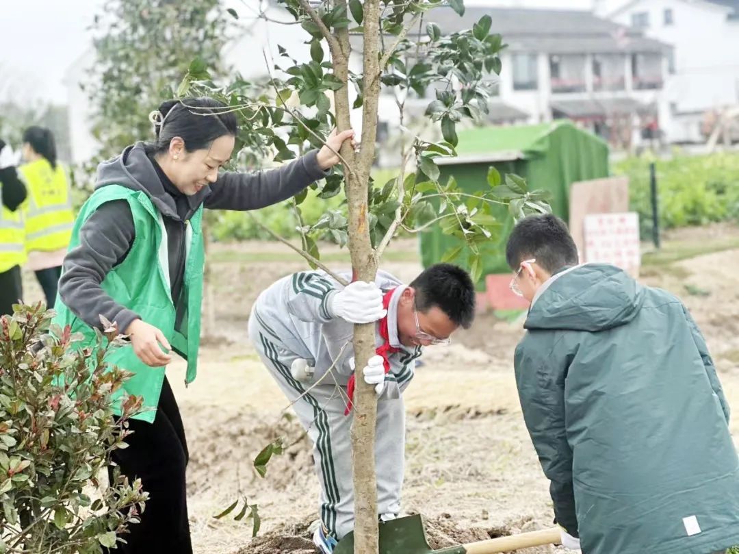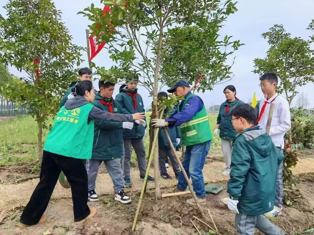 3月11日,奉贤区青溪·青村联合中学学生代表赴繁博花木、李窑村参加植树节活动。