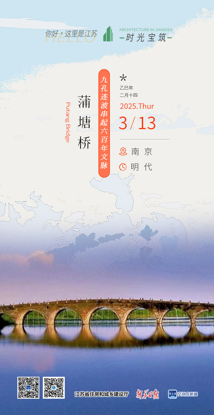 蒲塘桥位于江苏省南京市溧水区洪蓝镇蒲塘河上,是明朝时期的古建筑遗存,是一座九孔薄墩石拱桥。