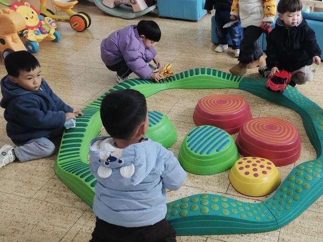 最让孩子们热血沸腾的当属赛车区域。地上蜿蜒的轨道,精致的玩具小车,瞬间点燃了他们心中的速度与激情。在这个过程中,小朋友们初步感知了速度、方向,了解到物体的运动轨迹,竞争意识也在你追我赶中悄然萌芽。