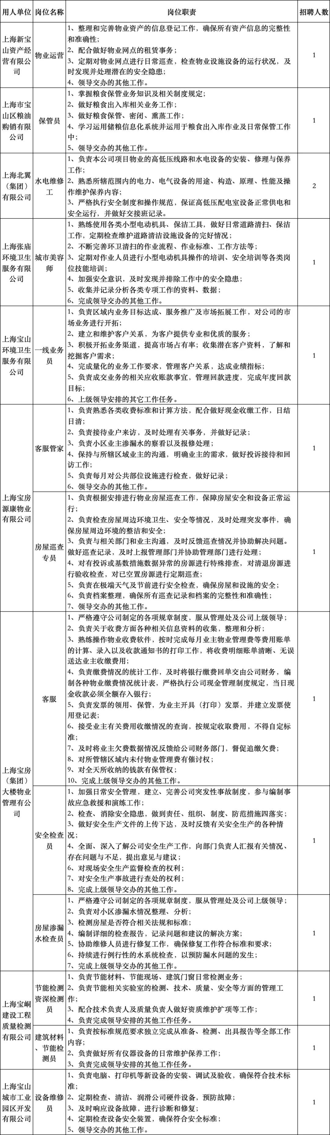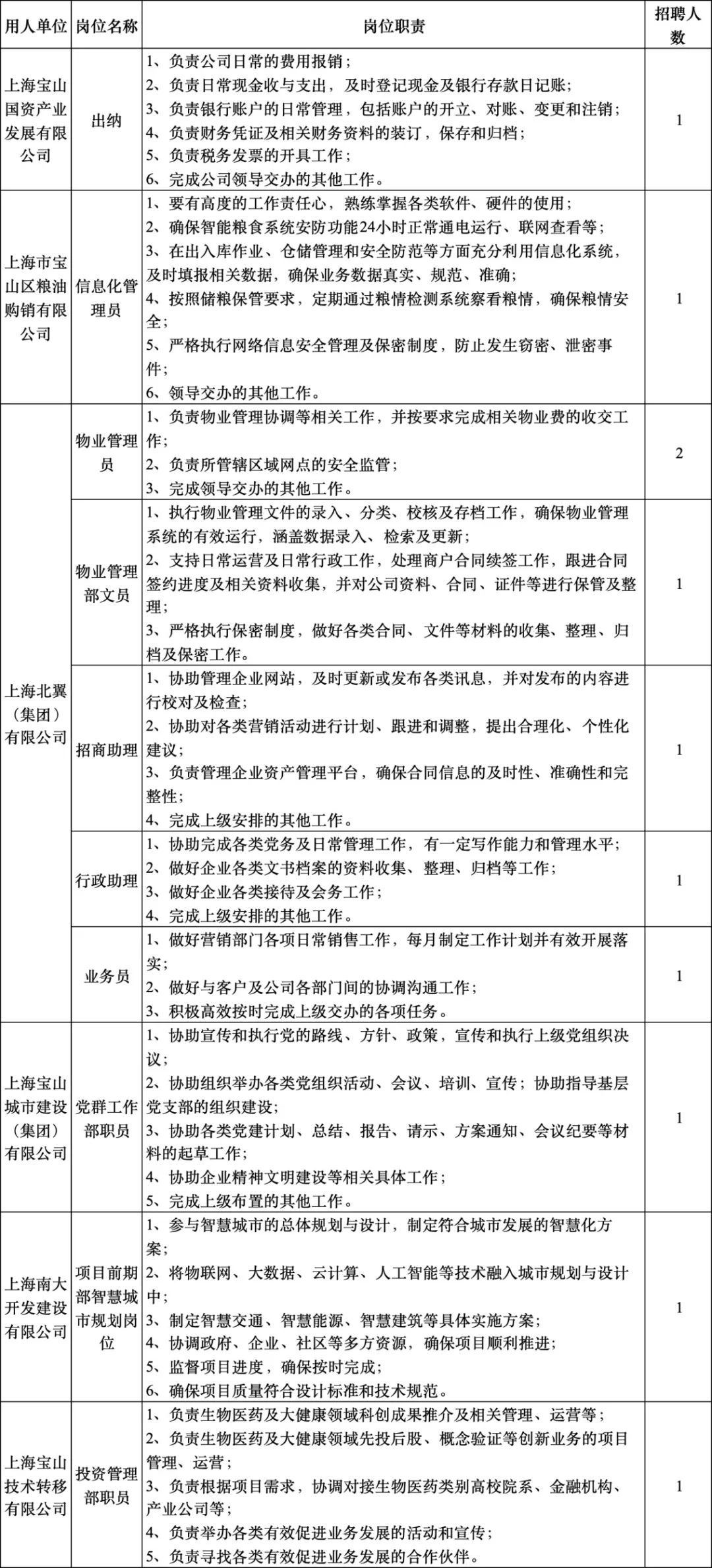 4、具备招聘岗位所要求的资格条件,本次招聘岗位分为“应届生岗位”“统招岗位”和“一线岗位”,具体资格条件详见《宝山区2025年上半年区属国有(集体)企业人员公开招聘简章》;