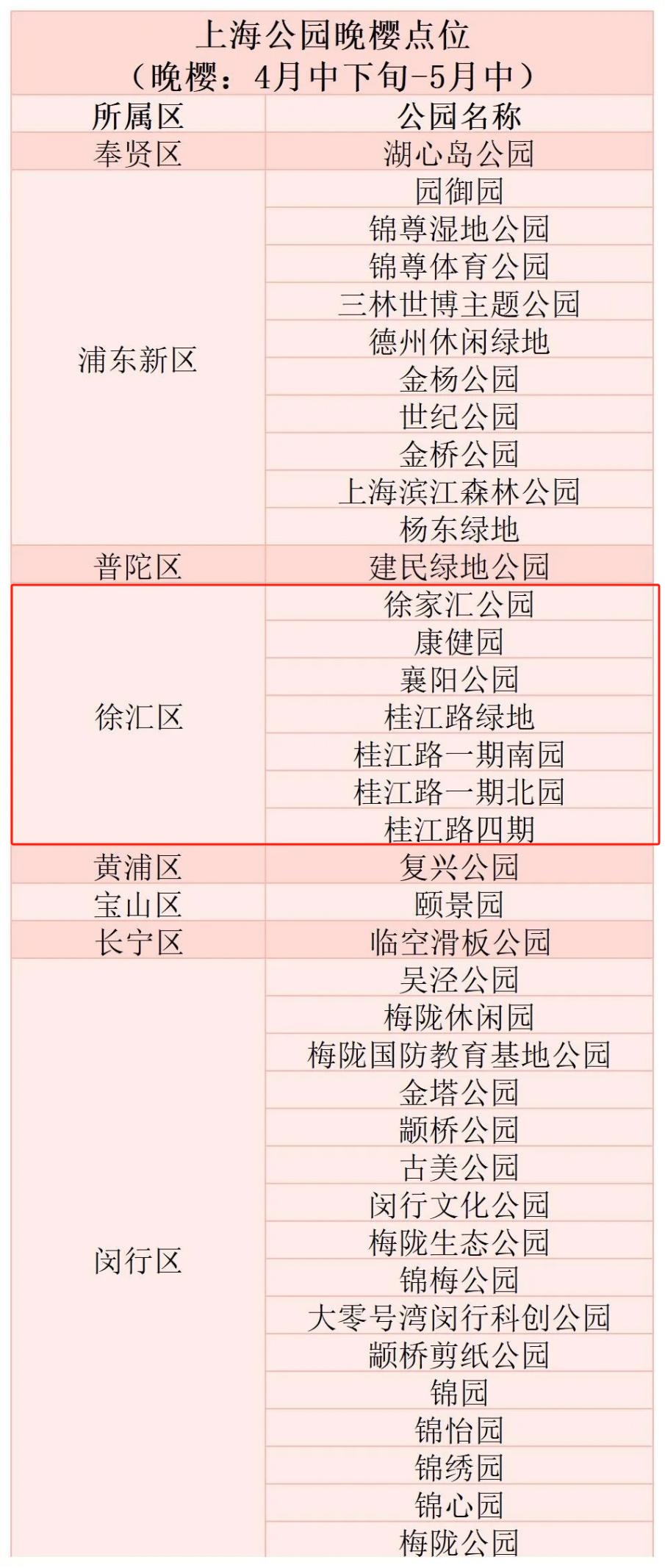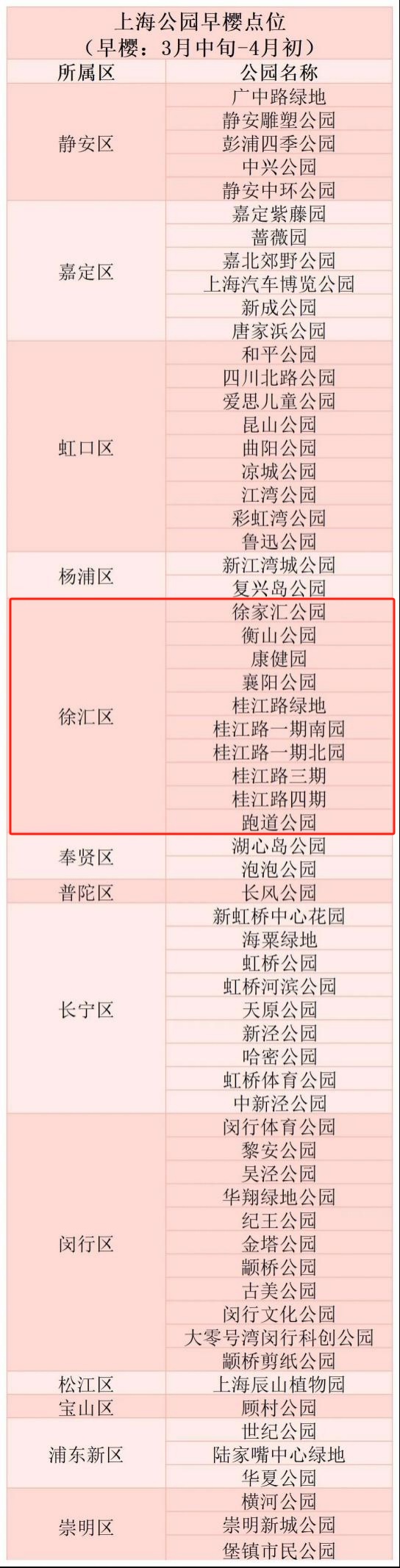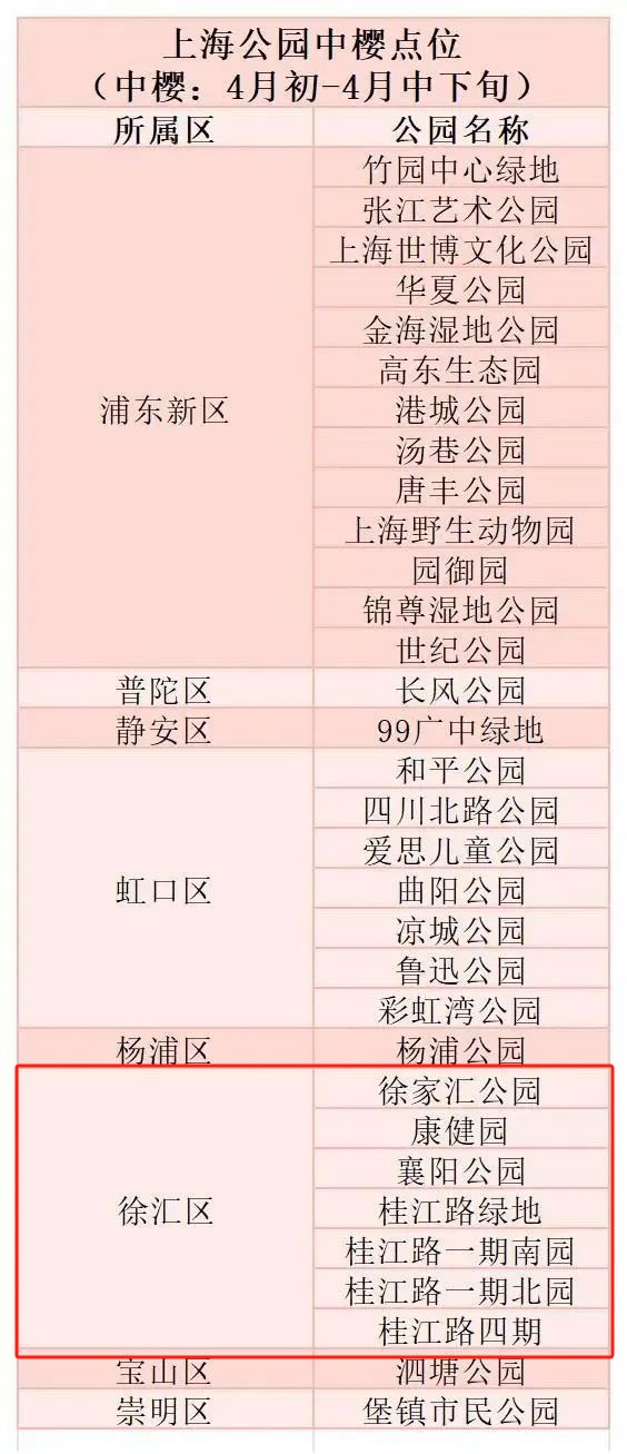 上海公园赏樱一览表