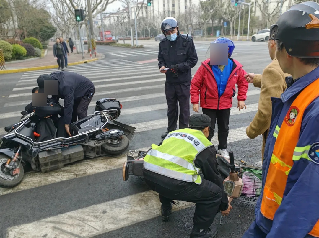去年此时,上海嘉定区新成路迎园路路口一辆电动自行车在右转时突然打滑摔倒,新成路街道城运中心巡逻队员发现情况后立即上报,中心派出执勤人员赶赴现场维护秩序。然而至当天中午,迎园路、和政路、墅沟路等多个路段接连发生20多次人车摔倒事件,有执勤人员的路口也不例外。