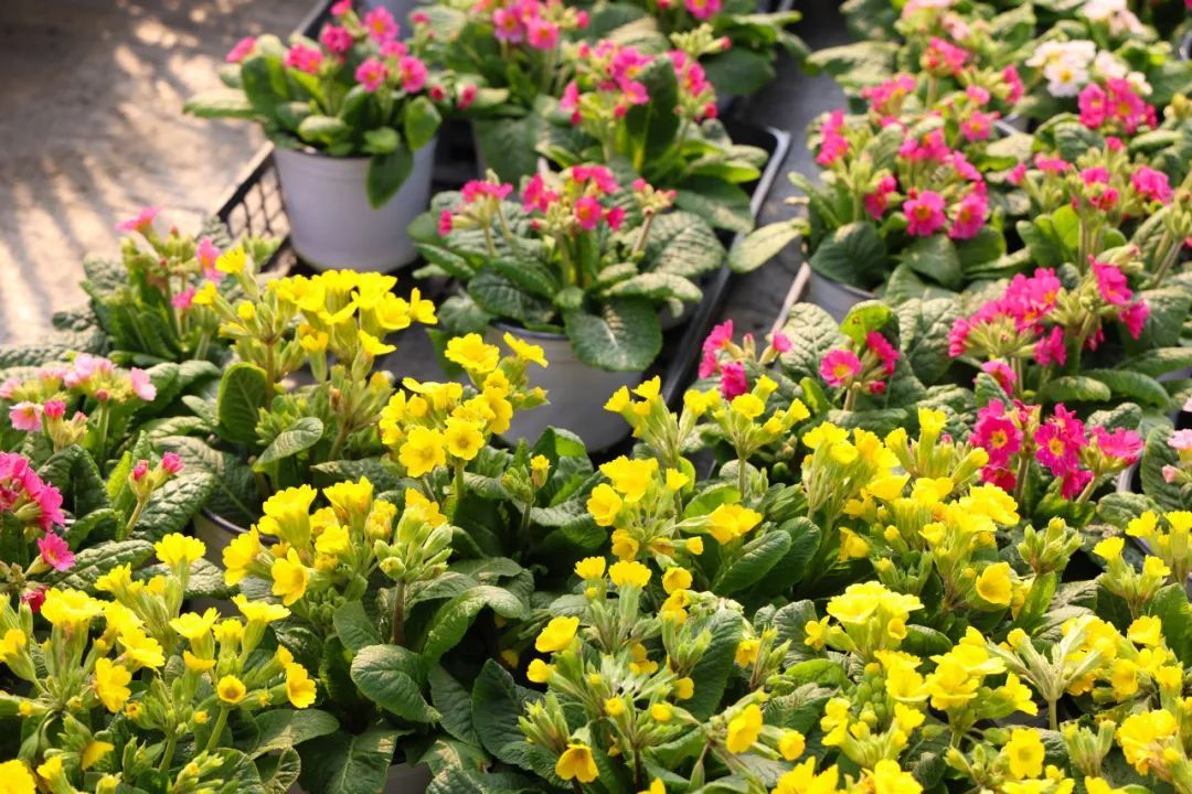 随着春天的到来,报春花、郁金香、玛格丽特、瓜叶菊、银莲花等时令花大量上市,棚内品种多样的花卉竞相绽放,吸引了消费者的目光。