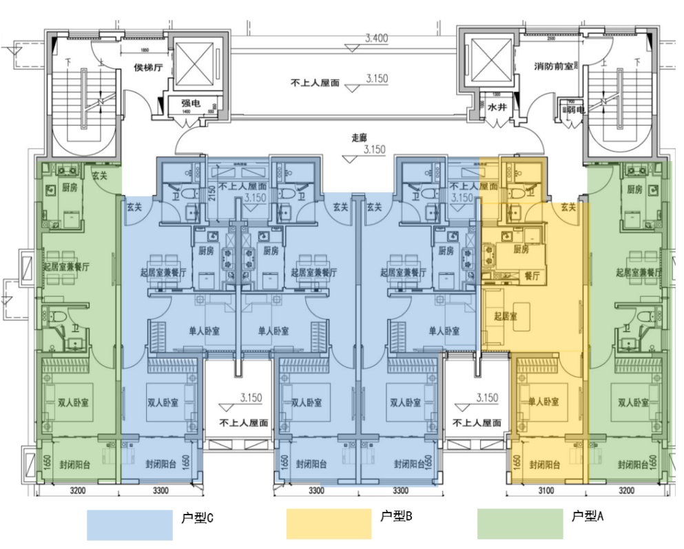 57号2—20层,每层6套房源,东西边套为一居室,中间套一居、二居皆有,均为朝南方向,具体以实际房源分配为准。