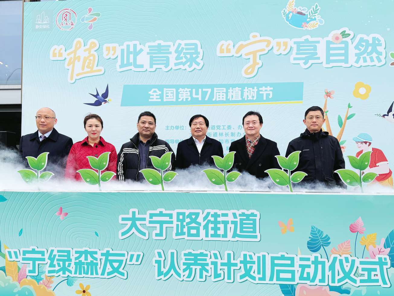 当天,大宁路街道“宁绿森友”认养计划正式启动,通过鼓励和引导社会各界人士广泛参与,以自主认养社区花草树木的形式,宣传人人爱绿、护绿、享绿的工作理念,深入践行共建绿色美好家园实践。
