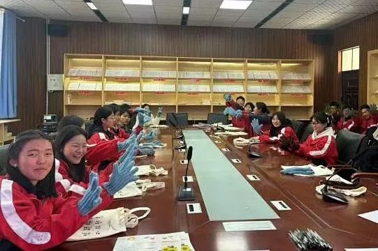 捐赠物资于新学期抵达后,学生们迫不及待试戴手套,以灿烂笑容和高举的双手表达感激。一位初二学生感动说道:“手套又轻又暖,像被上海的‘妈妈’们握着手一样。”