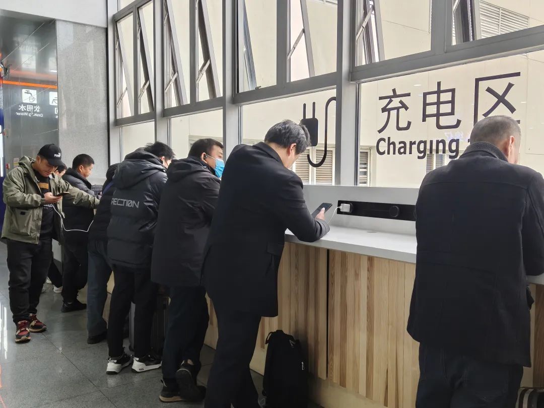 候车室设置充电吧台和座椅充电扶手等设备,满足旅客充电需求。