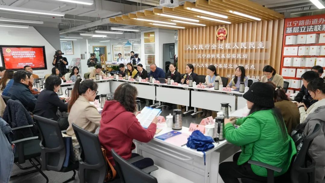 “3·15”国际消费者权益日前夕,在驻人大践行全过程人民民主江宁路街道基层实践站、上海市人大常委会基层立法联系点“四联”检察服务工作站内,一场“法治护航消费群体寻爱路 静心共绘营商环境新蓝图”检察开放日暨新闻发布会正在举行。