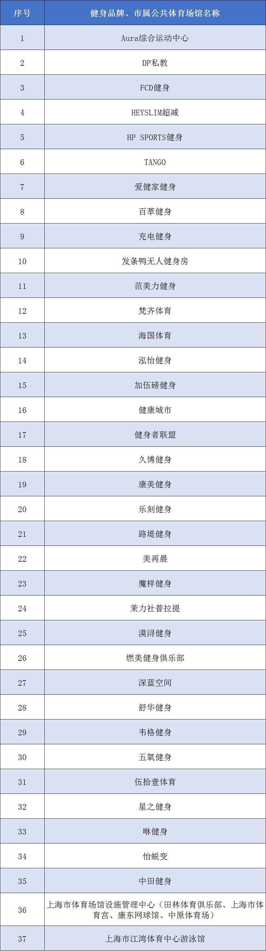 健身企业品牌和场馆名单