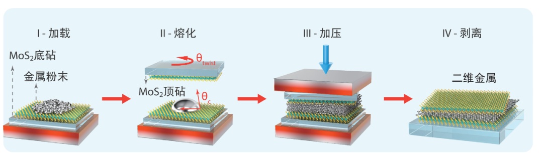 面对如何获得二维金属的挑战,中国科学院物理研究所张广宇研究员带领团队发展了原子级制造的范德华挤压技术,实现了原子极限厚度下各种二维金属的普适制备,包括铋、锡、铅、铟和镓。这些二维金属的厚度仅仅是一张A4纸的百万分之一,是一根头发丝直径的二十万分之一。如果把一块边长3米的金属块压成单原子层厚,将可以铺满整个北京市的地面。