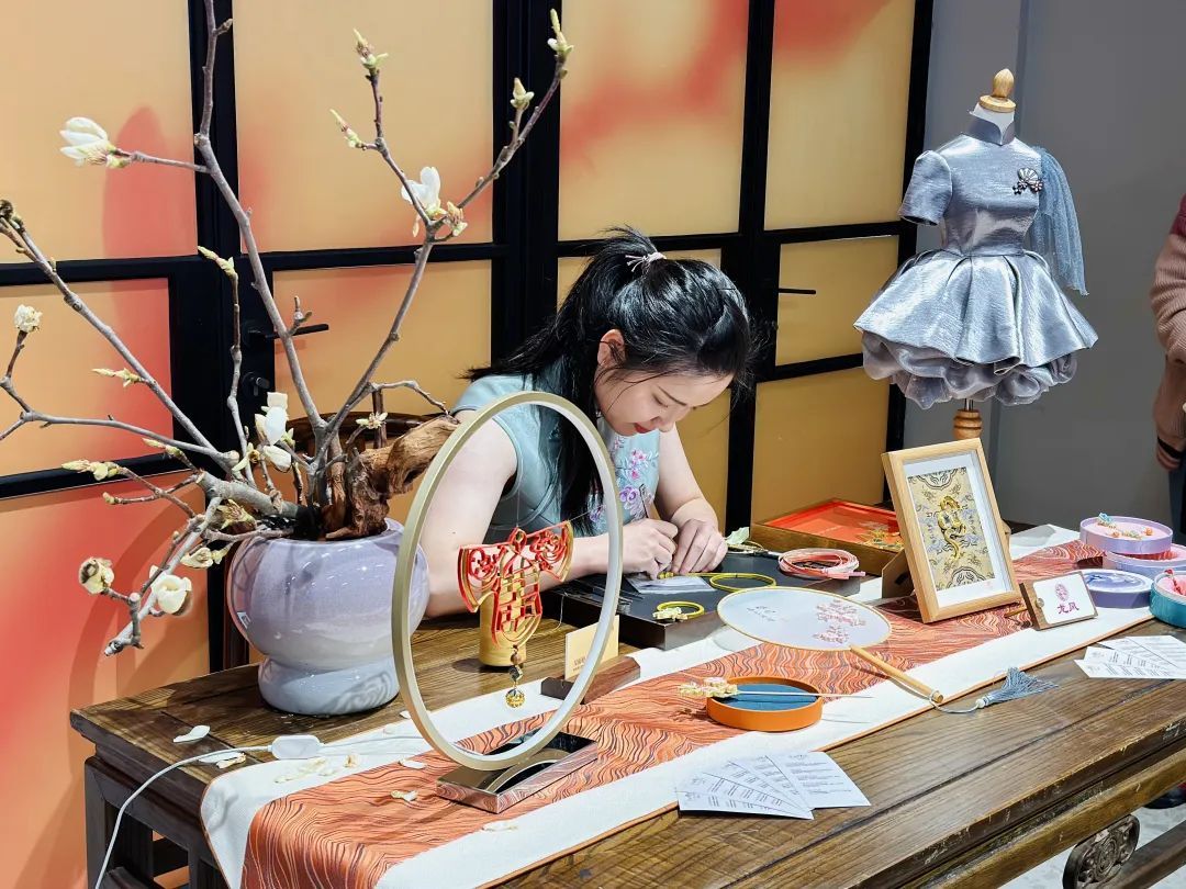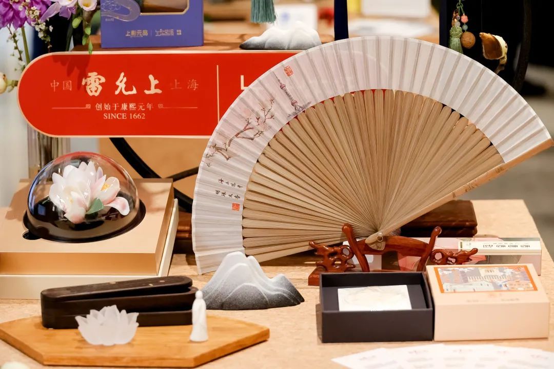 该展区云集了静安老字号的拳头产品和创意新品,包括开开集团龙凤旗袍及盘扣工艺现场制作、雷允上香囊香薰,以及九百集团景德镇、白玉兰等品牌新品。