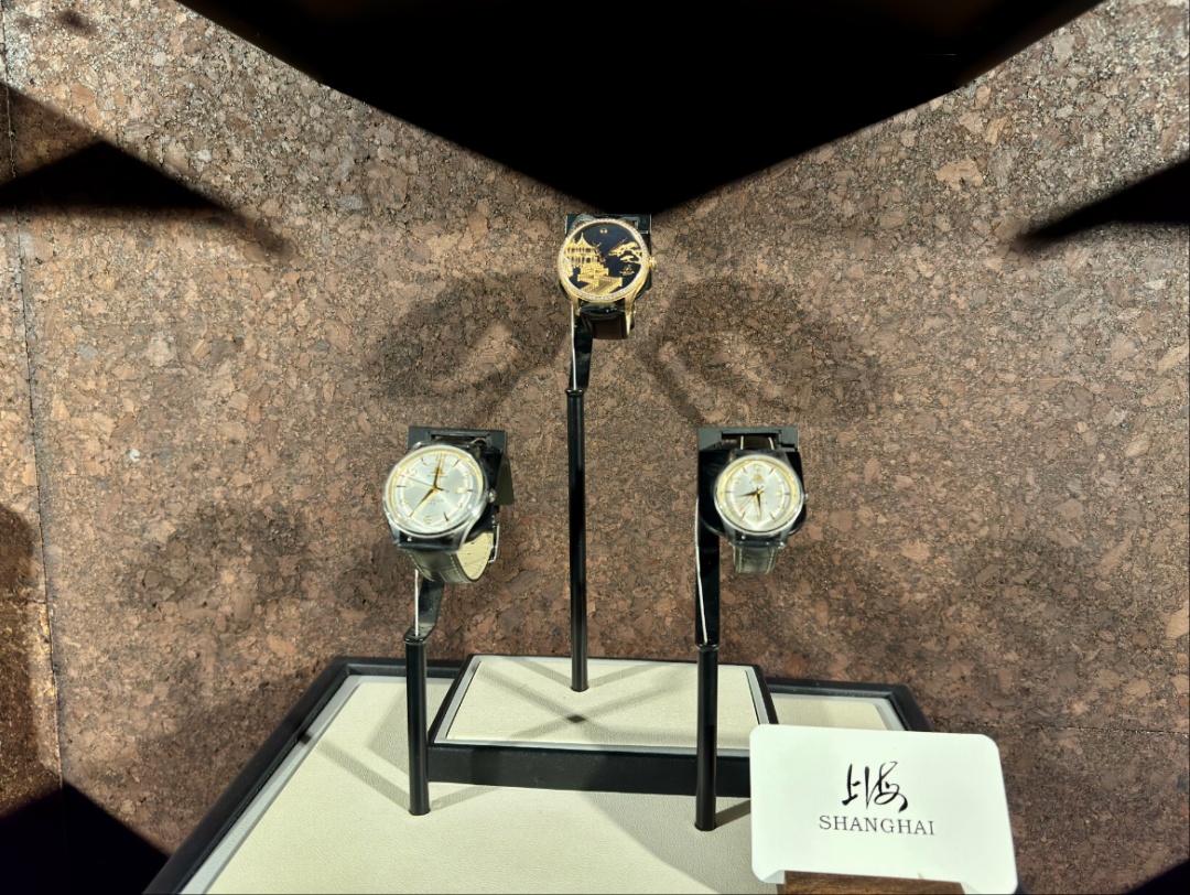 该区域展示上海老字号的公共文化空间,呈现上海牌手表在静安首发的生动场景,以及文房四宝等老字号品牌。其中,所展陈的上海表是致敬1955、70周年限量款,复刻中国第一只细马手表,重现初次试制手表的设计细节,重塑时代传奇之作。