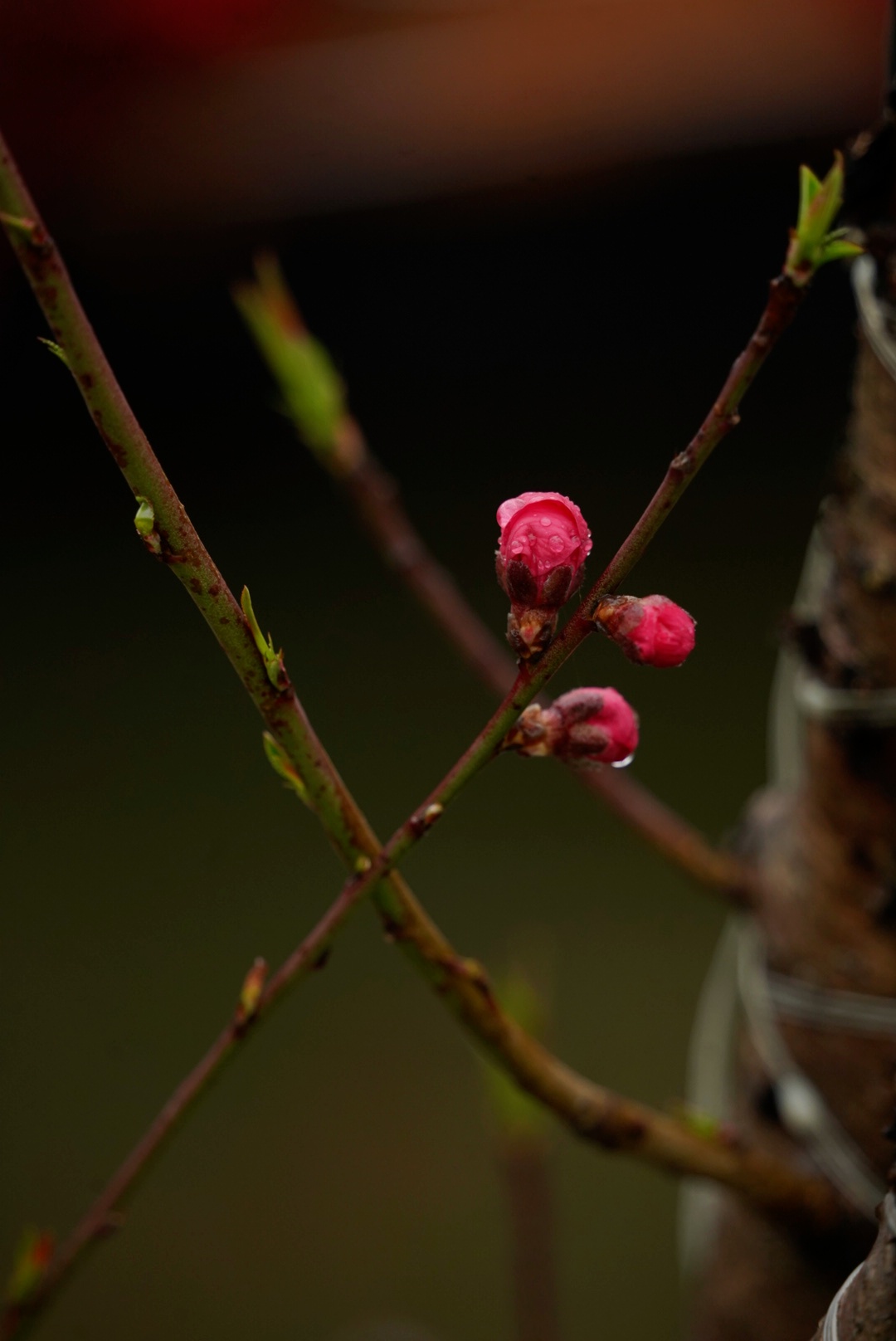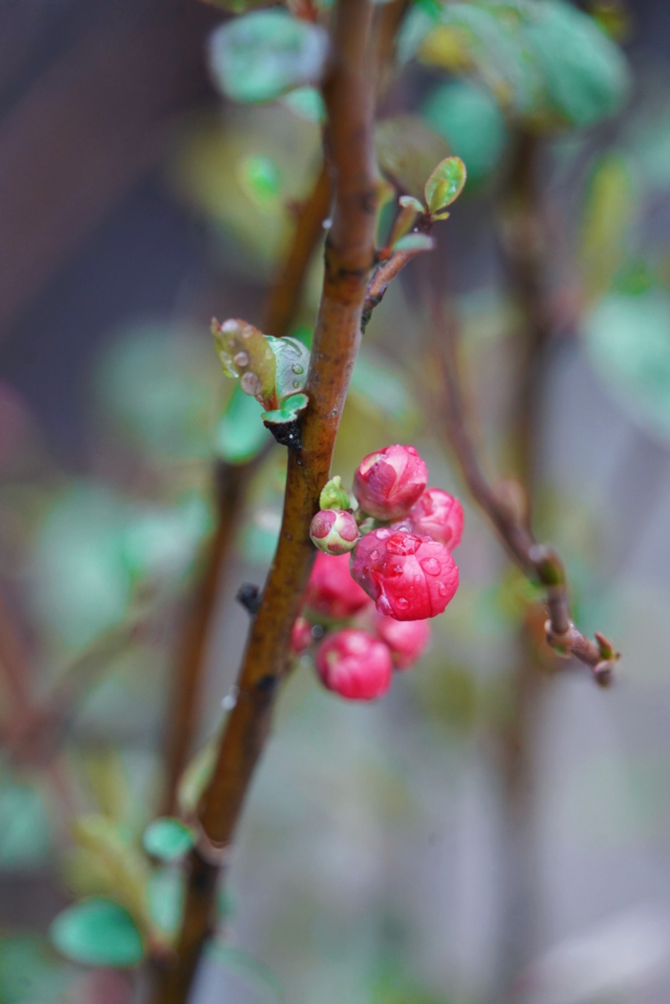 淡绿的嫩叶在水珠的映衬下